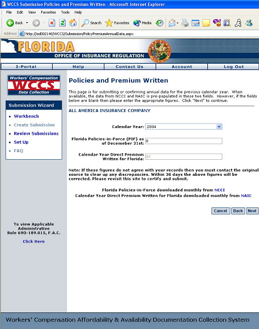 PIF as of December 31st and Calendar Year Direct Premium Written for Florida.