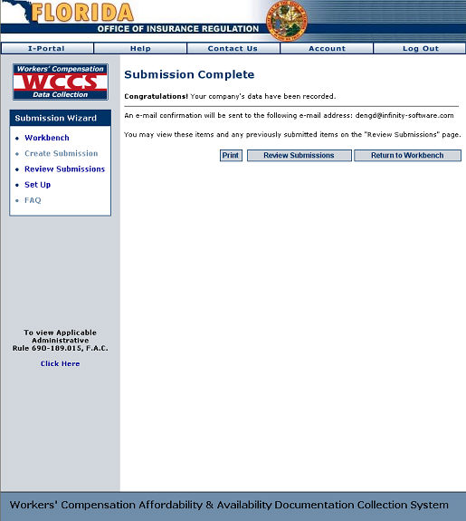 After your submission is completed, you have the option of printing the submission, reviewing the recent submission, or returning to your workbench.