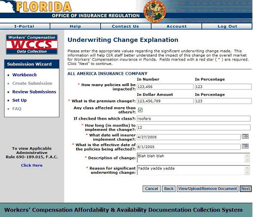 WCCS: Underwriting Change