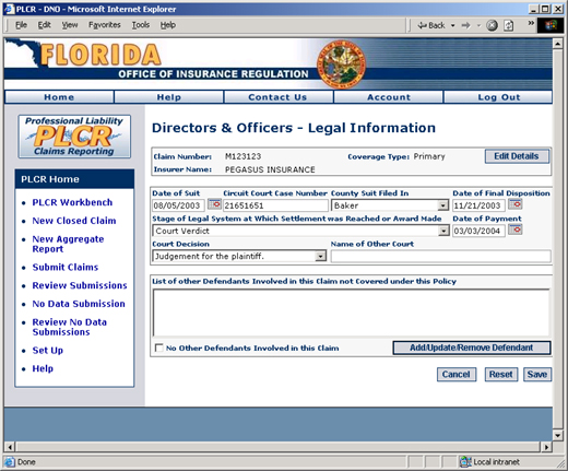 the lawsuit was resolved out of court, select "No Court Proceedings".